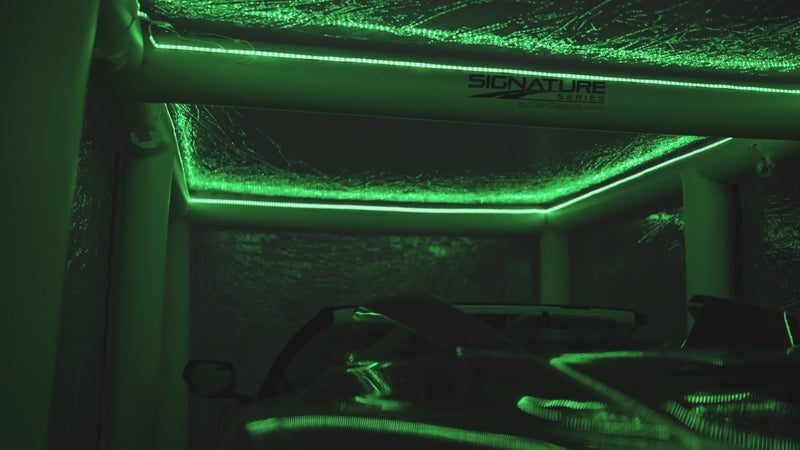 The Indoor Signature Series CarCapsule delivers 24/7 protection from dust, dirt, dings, corrosion, moisture, and pests while showcasing your vehicle, and includes a road-emblazoned floor and IntelliCharger.